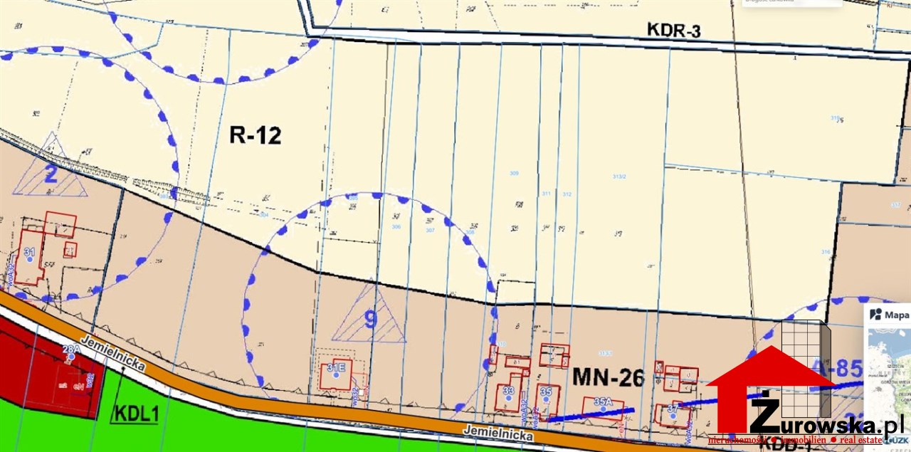 W Miejscowym Planie Zagospodarowania mają symbol MN, oznacza ona zabudowę mieszkaniową jednorodzinną oraz R-12 co oznacza rolę.